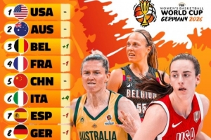 其中,美国女篮稳居榜首,澳大利亚女篮跟随其后,中国女篮排在第5位。