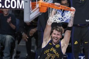 比赛最后时刻,东契奇快攻完成扣篮;Skip评论道:“等等,卢卡也能扣篮?在比赛最后时刻的快攻中,他双脚起跳,依然留在场内完成了一记扣篮。在主场大胜的最后时刻,他还在场上呢。”