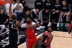 下一篇: 跟前队友学的?恩比德面对文班 双后撤步从罚球线撤出三分线命中